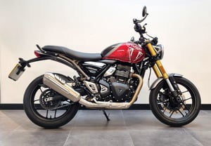 This is our 2024 Triumph Speed 400 in Lava Red Gloss / Storm Grey